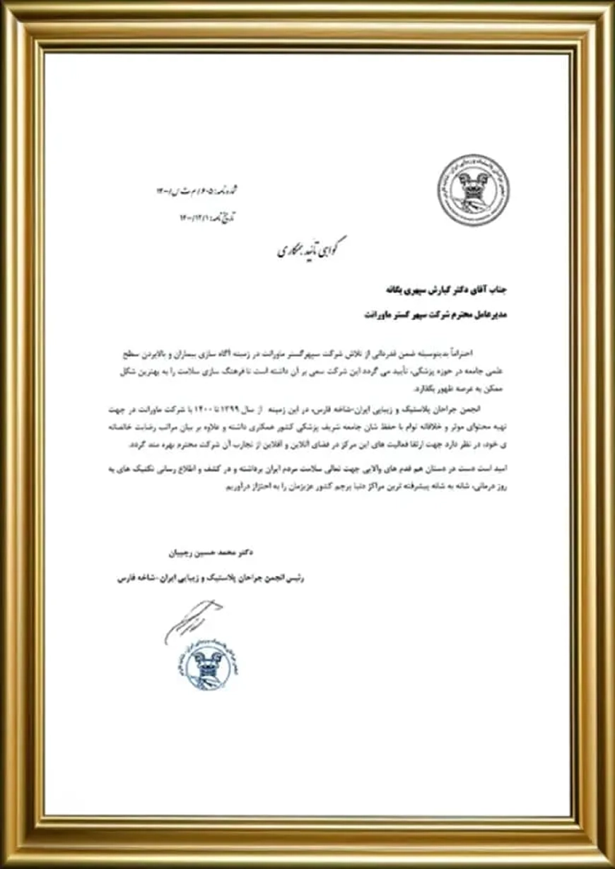 دریافت گواهینامههای معتبر بینالمللی از مایکروسافت، گوگل و سایر مراجع جهانی، همراه با تقدیرنامههای همکاری با برندهای داخلی و خارجی، بخشی از دستاوردهای ارزشمند ایشان است.